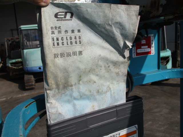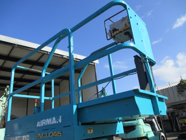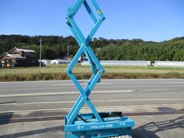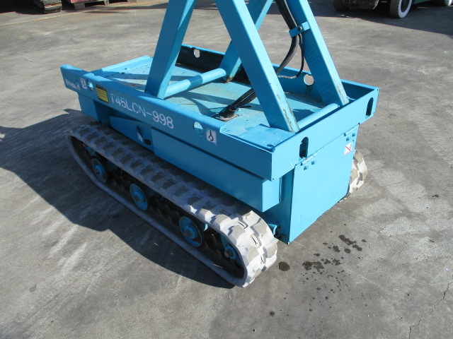 | 仕様(Spec) | 充電~動作良好 点検済み ・作業床地上高 最大4500mm 最小890mm ・最大積載荷重 230kg ・車体寸法 全長1280mm 全幅780mm 全高1840mm ・作業台寸法 全長1200mm(拡張時1750mm) 全幅645mm ・クローラー式 ・AC100V充電 2バッテリー ・最大登坂能力 18度 最高速度 2.0km/h ・車輌重量 700kg |