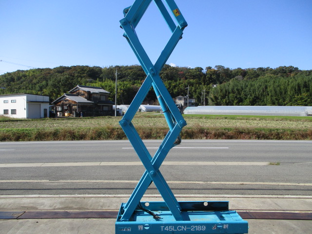 | 仕様(Spec) | 充電~動作良好 点検済み ・作業床地上高 最大4500mm 最小890mm ・最大積載荷重 230kg ・車体寸法 全長1280mm 全幅780mm 全高1840mm ・作業台寸法 全長1200mm(拡張時1750mm) 全幅645mm ・クローラー式 ・AC100V充電 2バッテリー ・最大登坂能力 18度 最高速度 2.0km/h ・車輌重量 750kg |