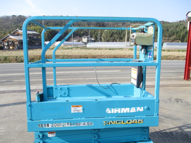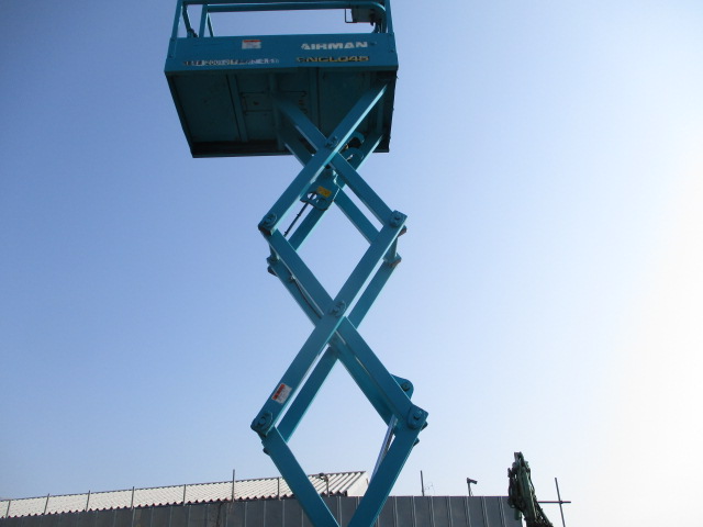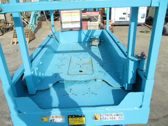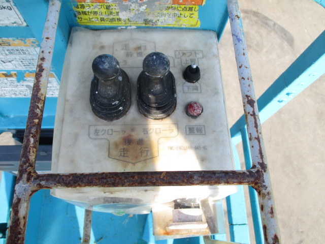 | 仕様(Spec) | 充電~動作良好 点検済み ・作業床地上高 最大4500mm 最小890mm ・最大積載荷重 230kg ・車体寸法 全長1280mm 全幅780mm 全高1840mm ・作業台寸法 全長1200mm(拡張時1750mm) 全幅645mm ・クローラー式 ・AC100V充電 2バッテリー ・最大登坂能力 18度 最高速度 2.0km/h ・車輌重量 750kg |