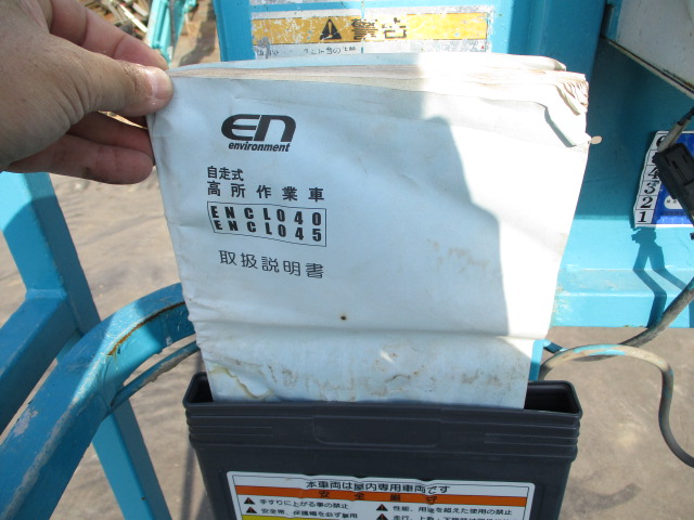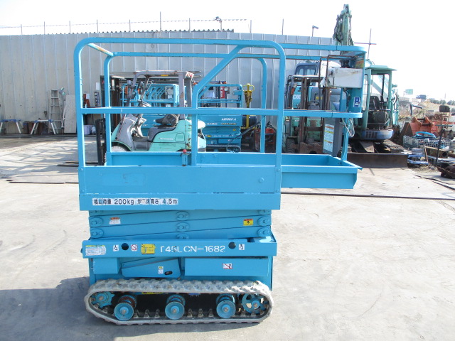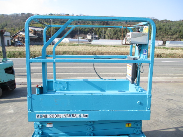 | 仕様(Spec) | 充電~動作良好 点検済み ・作業床地上高 最大4500mm 最小890mm ・最大積載荷重 230kg ・車体寸法 全長1280mm 全幅780mm 全高1840mm ・作業台寸法 全長1200mm(拡張時1750mm) 全幅645mm ・クローラー式 ・AC100V充電 2バッテリー ・最大登坂能力 18度 最高速度 2.0km/h ・車輌重量 750kg |