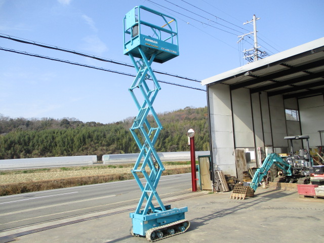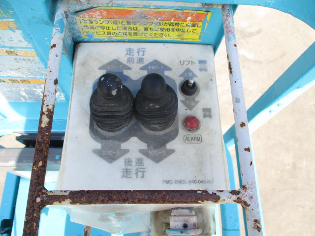 | 仕様(Spec) | 充電~動作良好 点検済み ・作業床地上高 最大4500mm 最小890mm ・最大積載荷重 230kg ・車体寸法 全長1280mm 全幅780mm 全高1840mm ・作業台寸法 全長1200mm(拡張時1750mm) 全幅645mm ・クローラー式 ・AC100V充電 2バッテリー ・最大登坂能力 18度 最高速度 2.0km/h ・車輌重量 750kg |