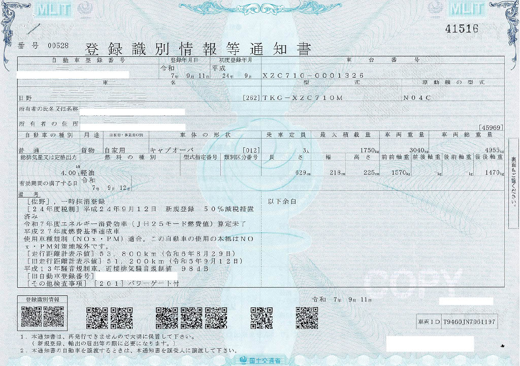 | 仕様(Spec) | 日野デュトロ平成24年製、走行距離57574km、ワイドロング車 乗車定員3名、車両総重量4955kg(準中型)最大積載量1750kg 車両寸法 長さ6290mm 幅2180mm 高さ2250mm 荷台寸法 長さ4380mm 幅2090mm 極東垂直パワーゲート付き 寸法 長さ1300mm 幅2050mm 最大荷重600kg 5速マニュアル車 NOx対応 一時抹消済み、走行~動作良好 |