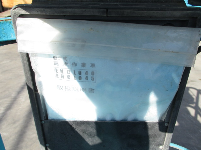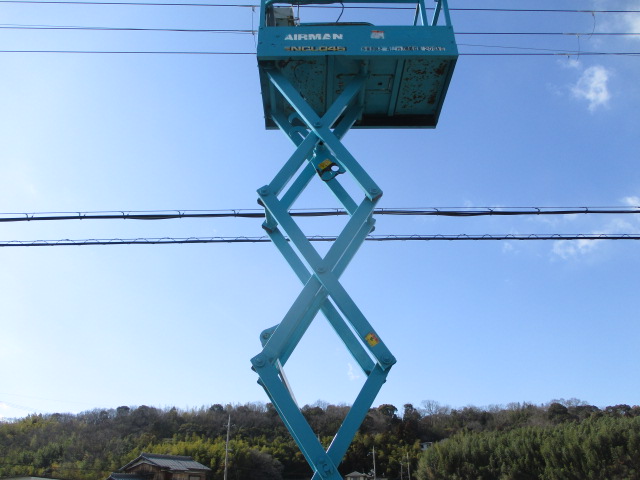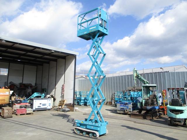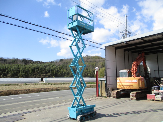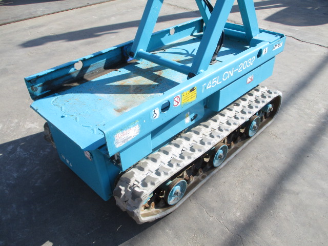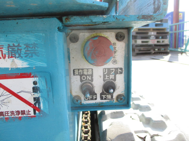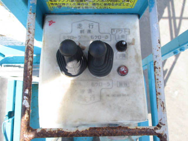 | 仕様(Spec) | 充電~動作良好 点検済み ・作業床地上高 最大4500mm 最小890mm ・最大積載荷重 230kg ・車体寸法 全長1280mm 全幅780mm 全高1840mm ・作業台寸法 全長1200mm(拡張時1750mm) 全幅645mm ・クローラー式 ・AC100V充電 2バッテリー ・最大登坂能力 18度 最高速度 2.0km/h ・車輌重量 750kg |