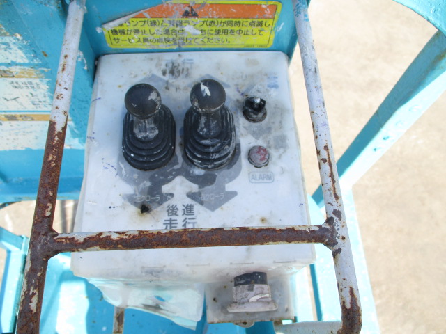 | 仕様(Spec) | 充電~動作良好 点検済み ・作業床地上高 最大4500mm 最小890mm ・最大積載荷重 230kg ・車体寸法 全長1280mm 全幅780mm 全高1840mm ・作業台寸法 全長1200mm(拡張時1750mm) 全幅645mm ・クローラー式 ・AC100V充電 2バッテリー ・最大登坂能力 18度 最高速度 2.0km/h ・車輌重量 750kg |