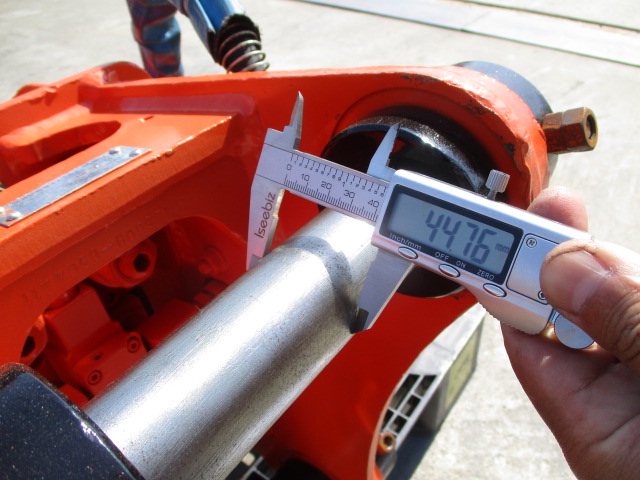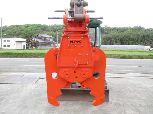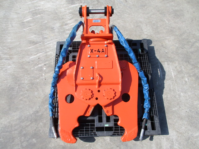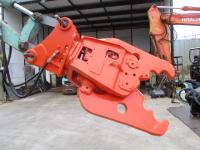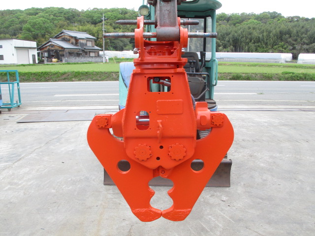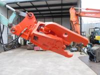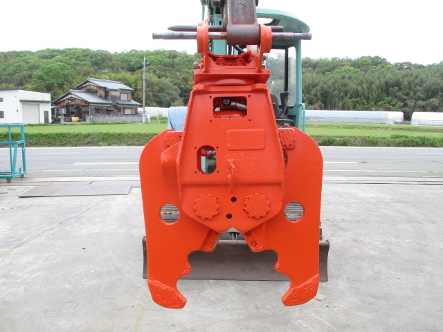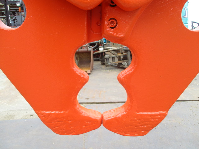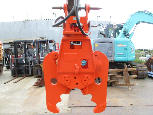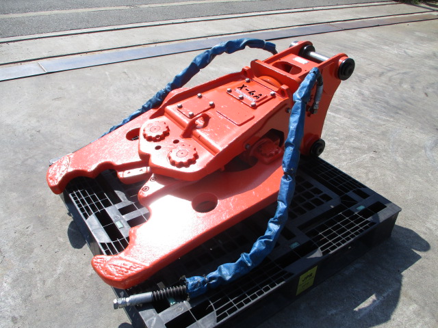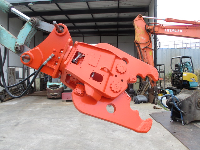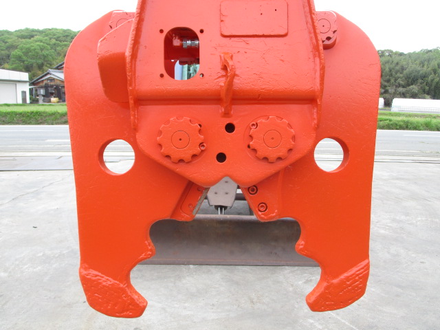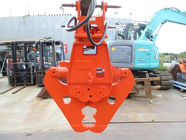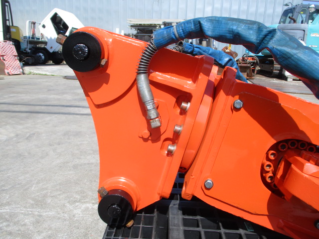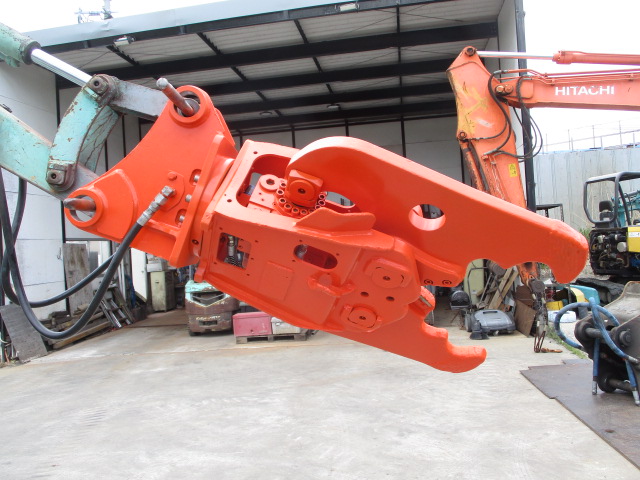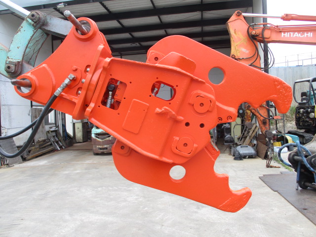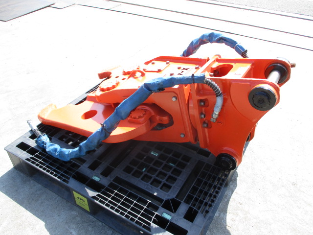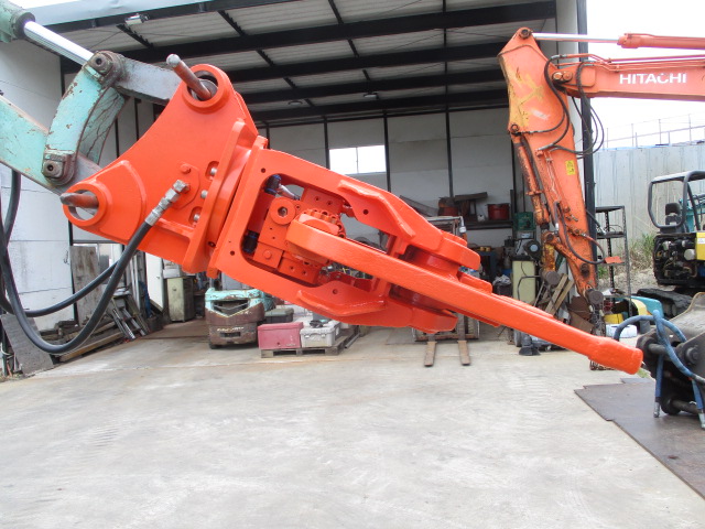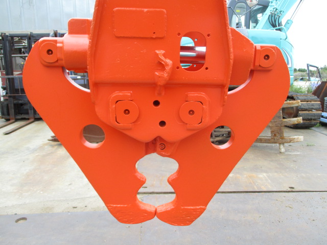 | 仕様(Spec) | 0.2m3(4~5.5t)クラス用大割機 現状の取付寸法(内は最大取付寸法)ピン径45(70)mm、アーム幅150(195)mm コベルコ用寸法 ・先端破砕力 340kn ・最大開口幅 440mm ・実重395kg 動作良好、シリンダーシール、スイベルシール交換済み |